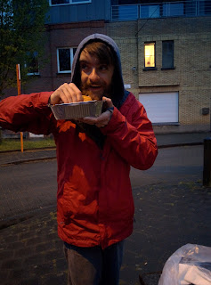 We returned to Ghent on the train, and Brandon still had an appetite so we located a burrito bar that he had been dying to go to since seeing a delivery motorbike for the place. Wrap Up Burrito Bar was nearly literally a hole in the wall place owned and run by one man. He made Brandon's tacos while giving us his spirited opinion on the Belgian government, recent terrorist attacks, and anything else on his mind. We also met his dog, the inspiration for his restaurant logo. It was quite an adventure.