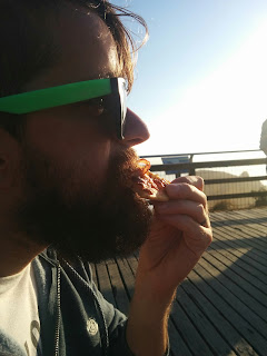 | We picked up our Persian pizza with walnut, feta, pear, potato, tomato, and sesame seeds and drove to The Twelve Apostles to watch the sunset |
